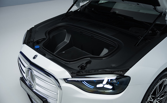 Şasi tarafında model, önde dört kollu, arkada çok kollu bağımsız süspansiyon sistemi üzerine inşa edilmiş. Opsiyonel olarak sunulan AIRMATIC havalı süspansiyon, adaptif amortisörlerle birlikte çalışarak sürüş karakterini anlık olarak ayarlayabiliyor. Sistem, sürüş moduna bağlı olarak araç yüksekliğini değiştirirken, aerodinamik verimlilik için yüksek hızlarda gövdeyi alçaltıyor. Google Maps verileriyle entegre çalışan öngörülü süspansiyon sistemi, yol koşullarını önceden analiz ederek sönümleme karakterini ayarlayabiliyor.